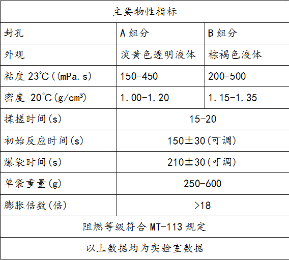 旺财28封孔是一种双组分液态聚合物材料,由树脂和固化剂组成。本产品可以实现对不同深度、孔径和角度的瓦斯钻孔快速封堵,同时具有粘接力强、密封性好、遇水发泡和反应速度易调整、操作简便等优点。