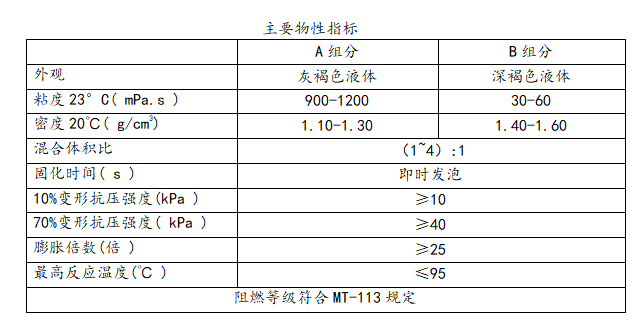 米菲尔311产品是一种双组分矿用充填密闭高分子酚醛发泡材料,当树脂与固化剂按照体积比(1~4):1的比例经专用注射枪混合后会立即发泡并快速膨胀到原来体积的10-30倍,随后在数分钟内固化。米菲尔311主要应用于地下矿井的空洞填充、有害气体堵截和快速建立防火墙等工程。