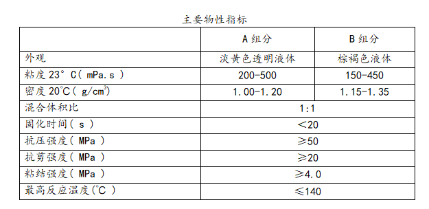 粘度低,可以渗入0.05 mm的缝隙高反应活性,遇水膨胀