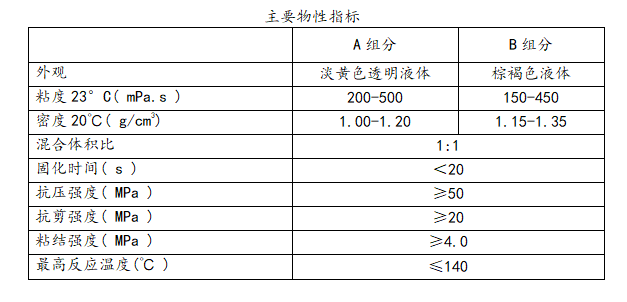 粘度低,可以渗入0.05 mm的缝隙高反应活性,遇水膨胀