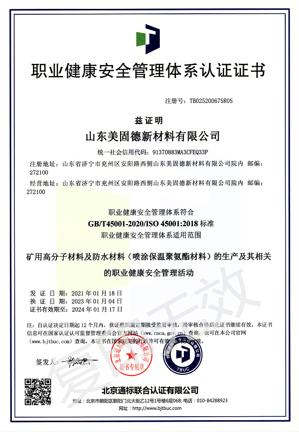 职业健康安全管理体系认证证书...