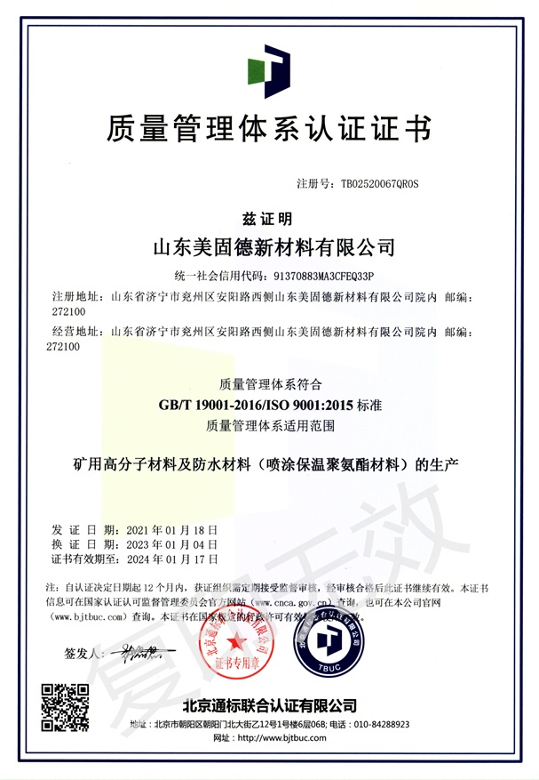 质量管理体系认证证书...